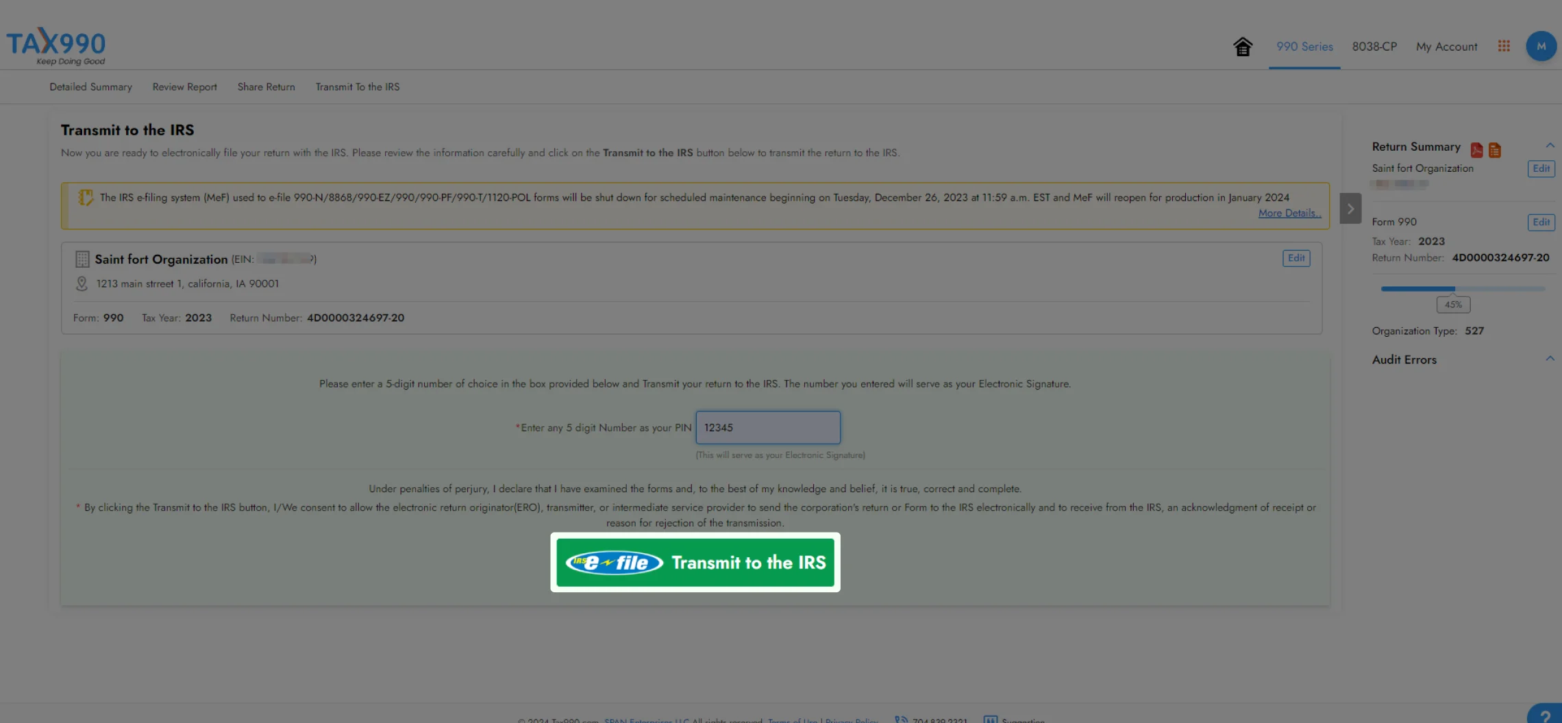 If your return is rejected by the IRS due to any errors, you can update and retransmit the form easily, at no extra cost.